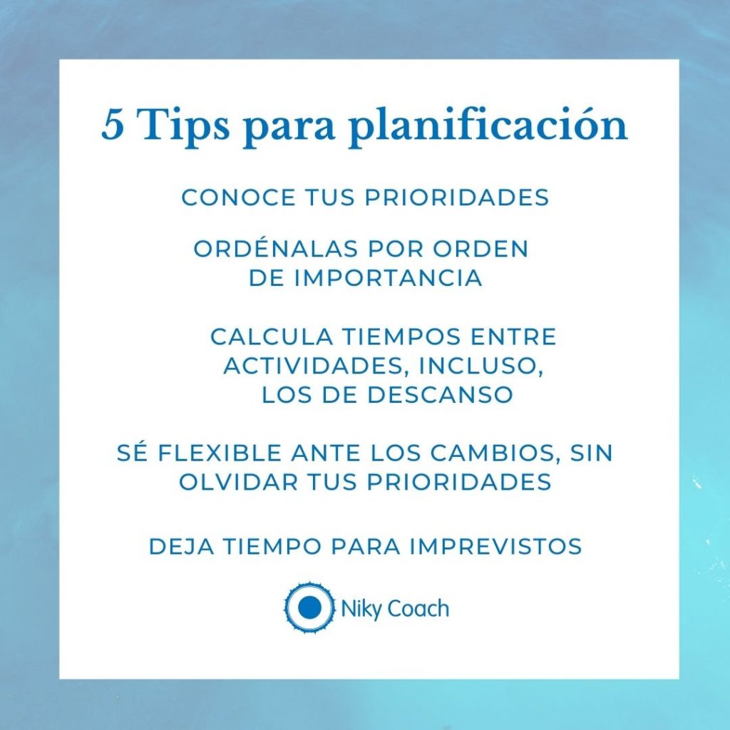 Encontrar tiempo en la agenda para una vida que te incluya a ti y a tus proyectos, es parte del concepto de vida en armonía y con calma que ofrece NikyCoach, así que, aquí van esos 5 tips para planificar tus rutinas:
