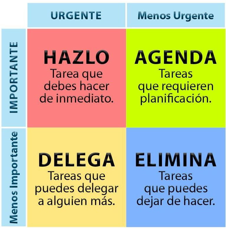 - Si ES urgente, pero no es importante = De ser posible, delega esta tarea.